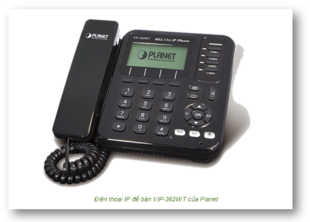 Dựa trên kinh nghiệm sản xuất nhiều năm về mạng VoIP, tập đoàn PLANET cho ra mắt sản phẩm điện thoại IP để bàn thế hệ mới VIP-362WT tích hợp tính năng không dây chuẩn IEEE 802.11 b/g/n được tích hợp vào trong thiết bị. VIP-362WT là một IP Phone Desktop với ưu điểm là giá rẻ, dễ dàng cài đặt và sử dụng đơn giản cho phép liên lạc với nhau qua điện thoại thông qua kết nối không dây, không cần hệ thống có dây tăng khả năng linh hoạt khi triển khai hệ thống VoIP. Thiết bị khá phù hợp với các doanh nghiệp và người dùng gia đình để tận hưởng chất lượng dịch vụ thoại nâng cao qua mạng Internet hoặc trong mạng nội bộ.