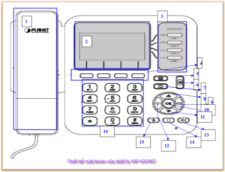 15) Các phím số: nhập các chữ số để thực hiện một cuộc gọi hoặc nhập thông tin cấu hình.