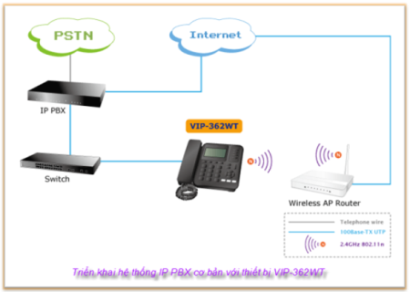 Ngoài áp dụng đối với cáp RJ-45 thông thường, VIP-362WT có thể kết hợp với các AP không dây của PLANET đểxây dựng nên một giải pháp hoàn hảo cho các ứng dụng thoại qua mạng không dây. Với sự hỗ trợ linh hoạt cho hệ thống tổng đài PLANET IP PBX và hệ thống VoIP hiện tại, VIP-362WT cho phép người sử dụng tiếp nhận hay thực hiện các cuộc gọi trong vùng phủ sóng không dây 802.11n và đồng thời cung cấp dịch vụ truyền thông thoại chất lượng cao thông qua máy chủ quản lý cuộc gọi SIP và các thiết bị VoIPkhác