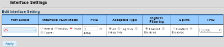 Trên giao diện cấu hình chọn VLAN  Interface Setting