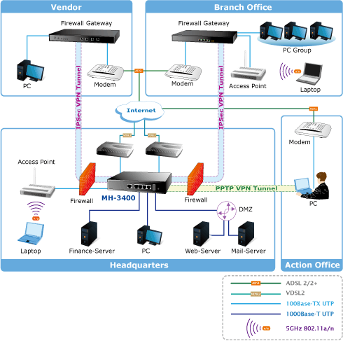 MH-3400 là một sản phẩm hoàn chỉnh với nhiều tính năng trên một thiết bị. Hỗ trợ tính năng tưởng lửa, lọc nội dung, và hỗ trợ kết nối VPN với mã hóa 3DES và AES là một sản phẩm hoàn hảo cho hệ thống mạng. Sẽ không có kết nối phức tạp hay những tính năng an ninh khác trên hệ thống mạng được yêu cầu