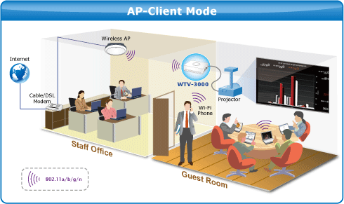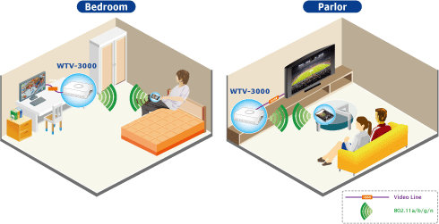 Thiết bị WTV-3000 là một thiết bị chuyển đổi TV sử dụng công nghệ không dây IEEE 802.11n hỗ trợ băng thông tới 300 Mbps truyền dẫn tốc độ kết nối cao. Thiết bị có thể kết nối không dây với máy tính xách tay, điện thoại thông minh, máy tính bảng, giúp thưởng thức những bộ phim yêu thích, đoạn video, hình ảnh hay các chương trình trực tuyến với chất lượng HD trên TV với chất lượng âm thanh và hình ảnh rõ ràng mà không cần kết nối laptop/ máy tính bảng/ điện thoại thông minh với TV thông qua cáp HDMI hoặc cáp A/V