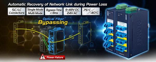Để bảo vệ mạng cáp quang quan trọng khỏi sự cố hệ thống điện, IFB-244 Series là một giải pháp phục hồi tự động cực nhanh để duy trì kết nối mạng cáp quang trong khi mất điện.