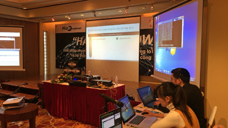 Các chuyên viên kỹ thuật của công ty NETCOM trình diễn các kịch bản phòng chống tấn công Vật lý và Nghe lén ăn cắp dữ liệu sử dụng giải pháp của HanDreamnet kết hợp với TrendMicro tại Hà nội