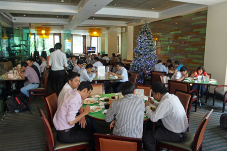 Khách hàng và nhân viên công ty NETCOM tiếp tục trao đổi về công nghệ và khả năng kinh doanh đối với giải pháp và sản phầm an ninh mạng thế hệ mới của HanDreamnet trong bữa trưa tại khách sạn Equatorial, Tp. Hồ Chí Minh