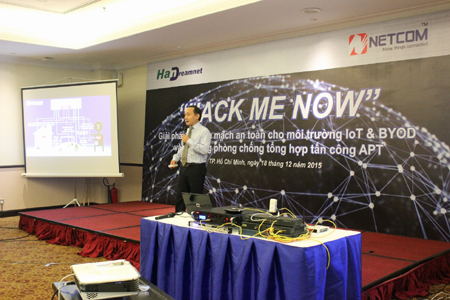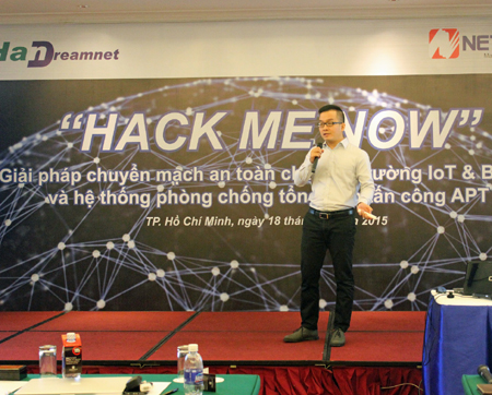 Anh Trịnh Lê Nam-Giám đốc công ty NETCOM giới thiệu về các thách thức mới đối với an ninh mạng trong xu hướng IoT và BYOD trong sự kiện “Hack Me Now” tại Tp.Hồ Chí Minh