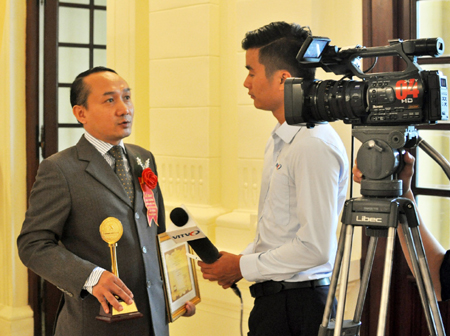 Anh Trịnh Lê Nam-Giám đốc công ty NETCOM nhận giải thưởng Thương Hiệu Vàng 2015 từ Ban Tổ chức Bộ Công Thương